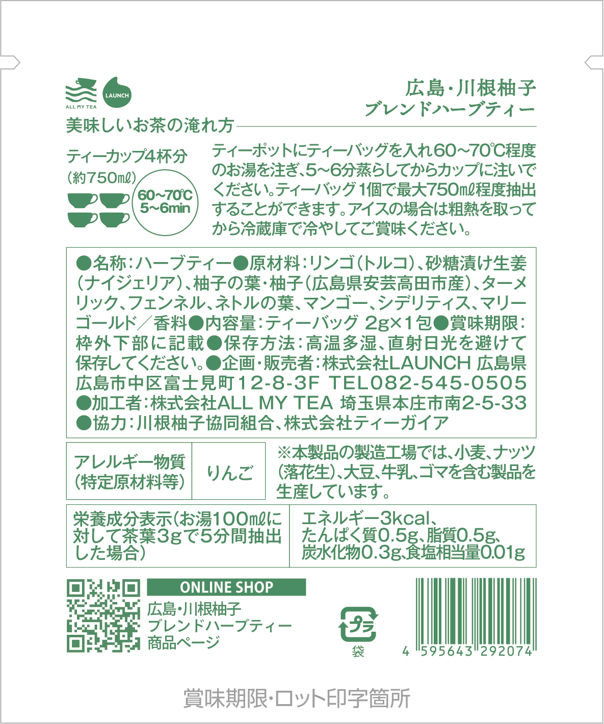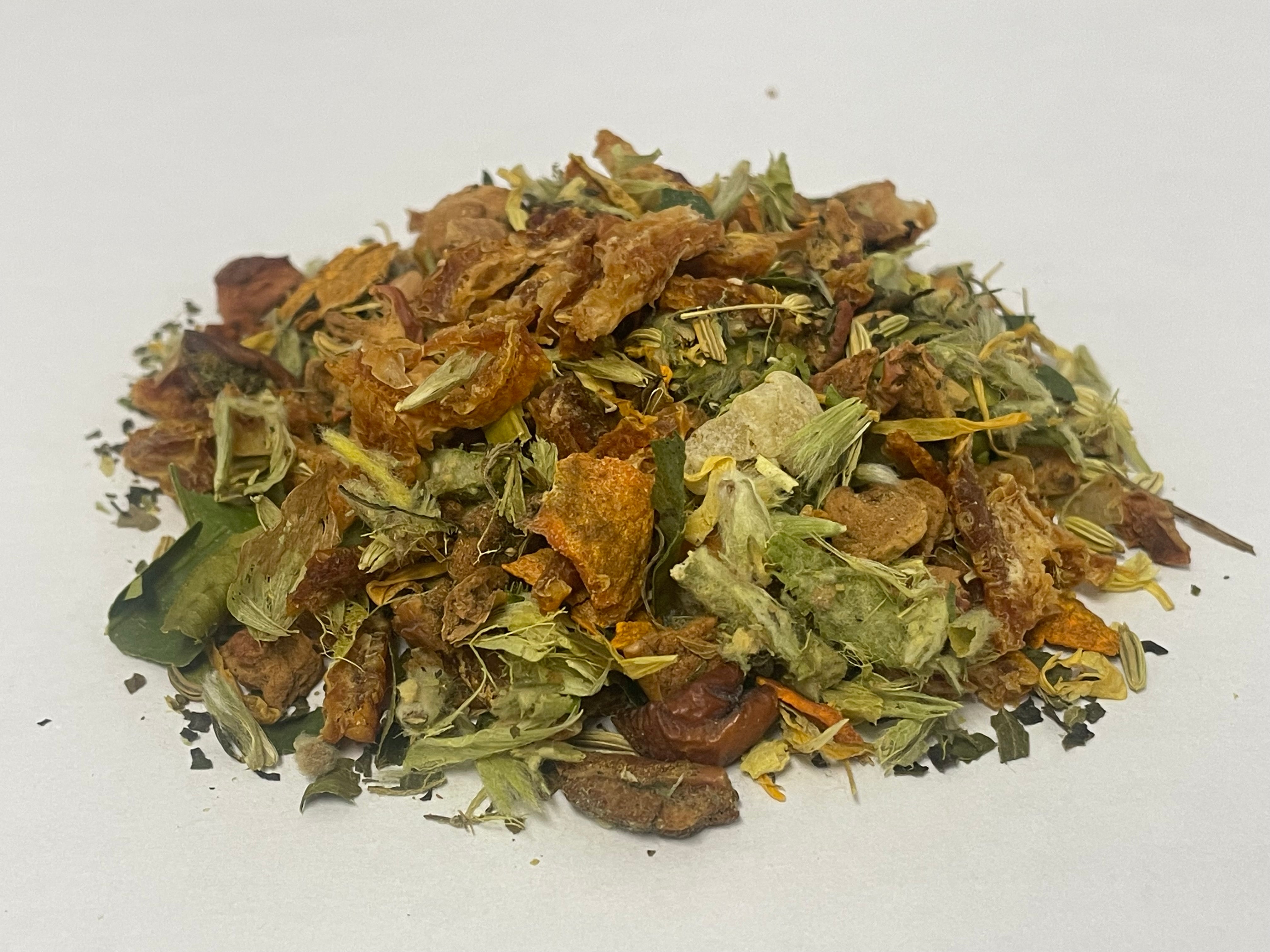 ・リンゴ(トルコ)・砂糖漬け生姜(ナイジェリア)・柚子の葉・柚子(広島県安芸高田市産)・ターメリック ・フェンネル・ネトルの葉・マンゴー・シデリティス・マリーゴールド