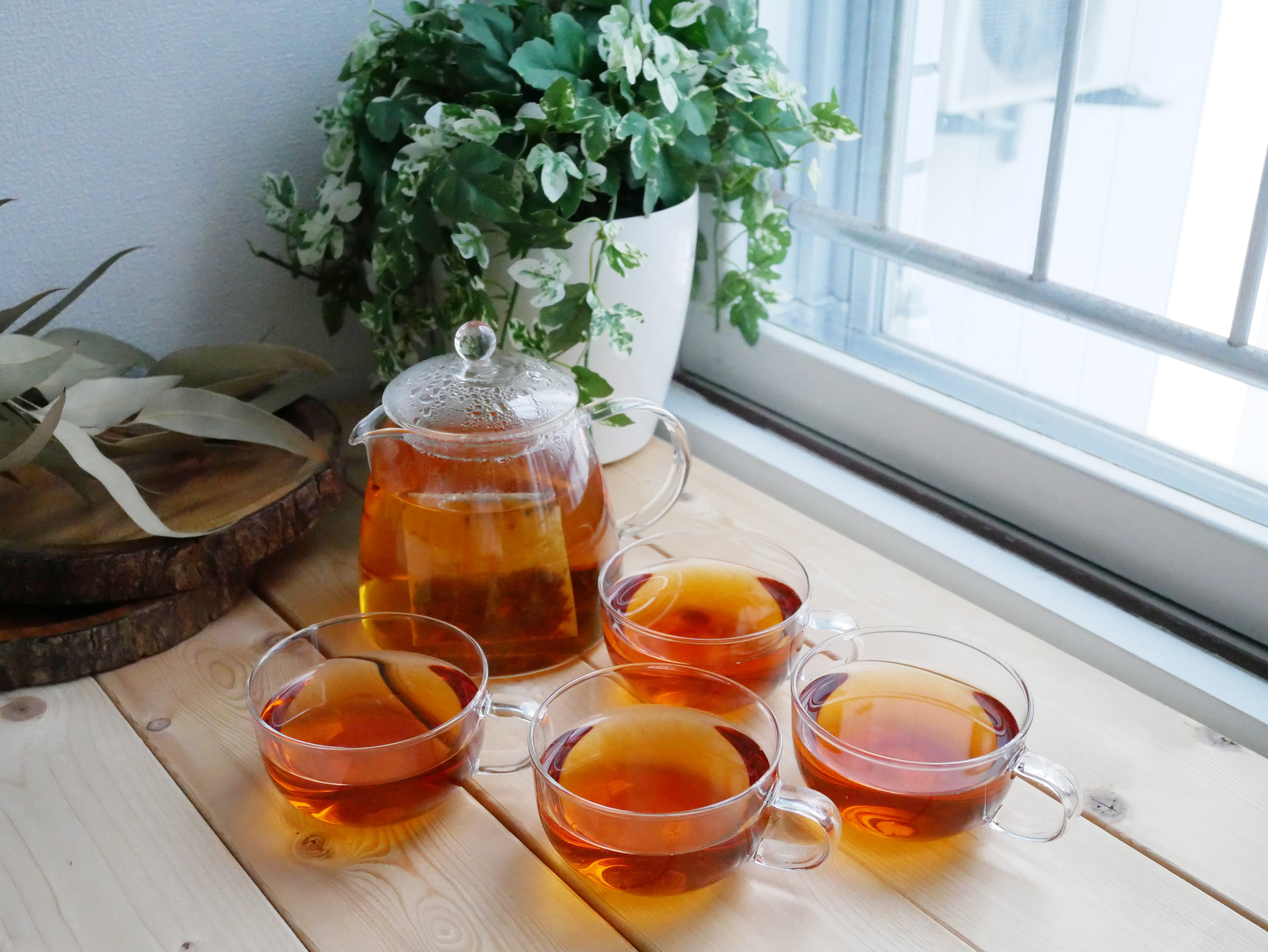 ティーポットにティーバッグを入れ60〜70℃程度のお湯を注ぎ、5〜6分蒸らしてからカップに注ぎ分けてください。ティーバッグ1個で最大750ml程度(ティーカップ4杯分)抽出することができます。