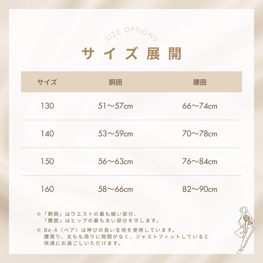 ※Be-A〈ベア〉は伸びの良い生地を使用しています。腰周り、太もも周りに隙間がなく、ジャストフィットしていると快適にお過ごしいただけます。