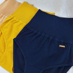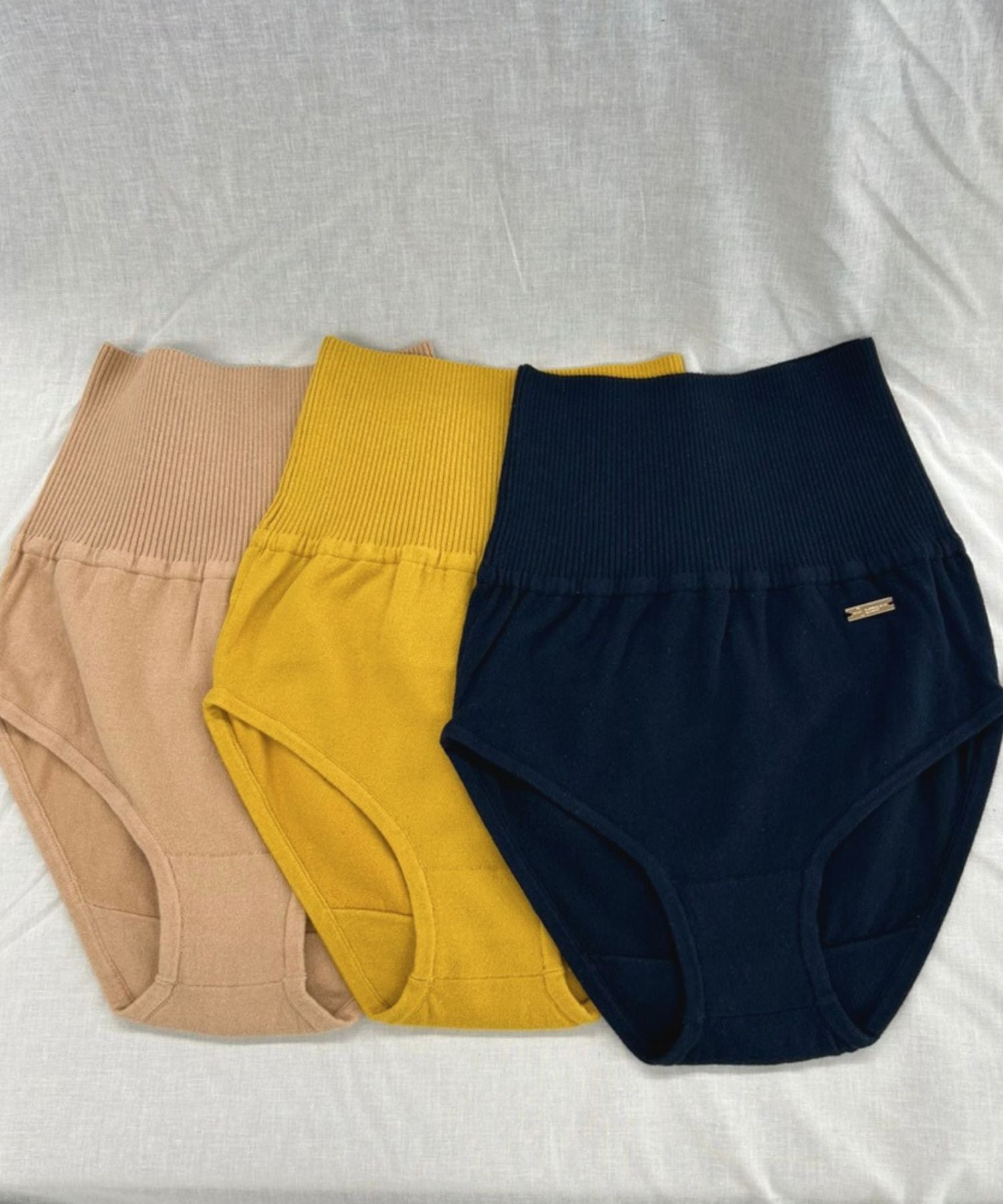 お腹をすっぽり包んでくれるデザイン性あるハラマキつきショーツです。