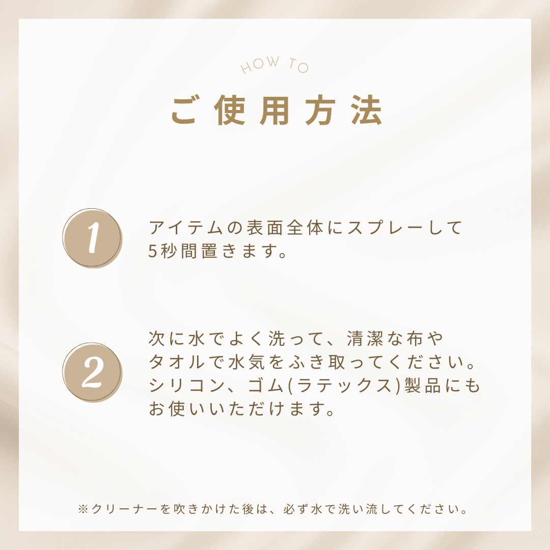 「インティメイト・アクセサリークリーナー」はアルコールとパラベンフリーのスプレータイプのクリーナー。