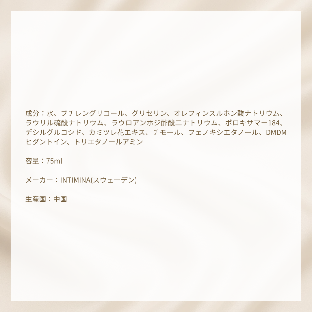 成分:水、ブチレングリコール、グリセリン、オレフィンスルホン酸ナトリウム、ラウリル硫酸ナトリウム、ラウロアンホジ酢酸二ナトリウム、ポロキサマー184、デシルグルコシド、カミツレ花エキス、チモール、フェノキシエタノール、DMDMヒダントイン、トリエタノールアミン