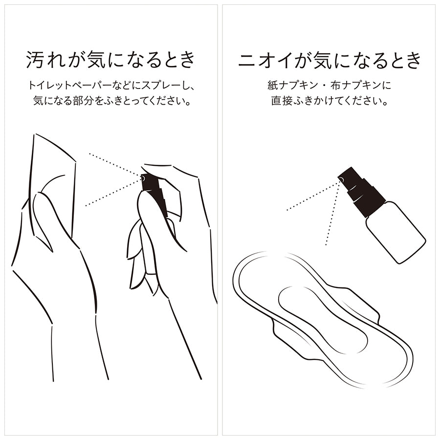 トイレットペーパーなどにスプレーし、気になる部分をふきとってください。