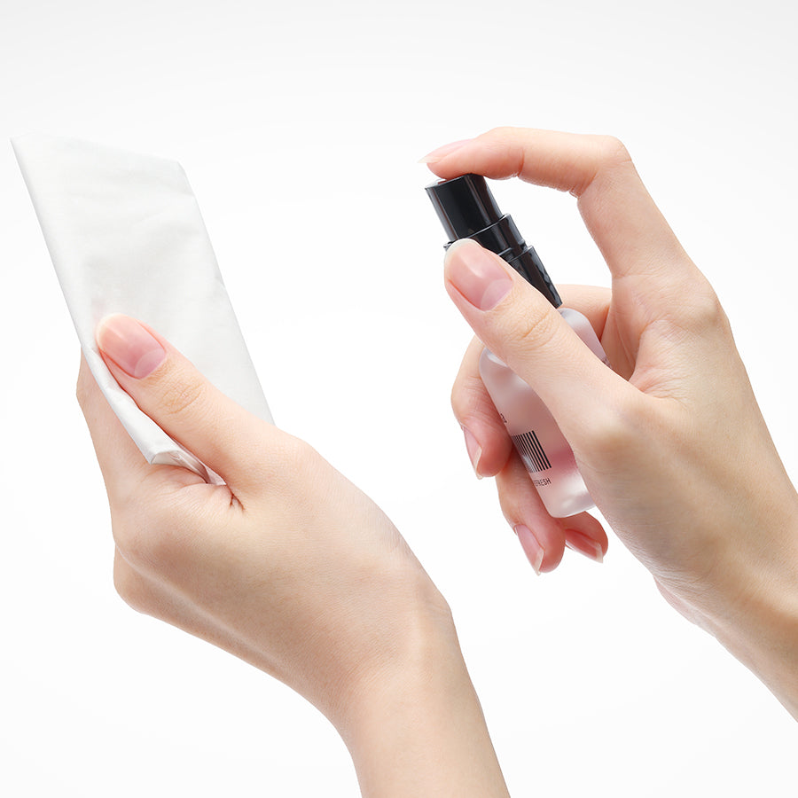 紙ナプキン・布ナプキンに直接ふきかけてください。