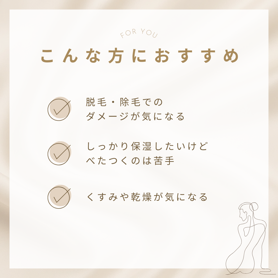 脱毛・除毛ケアによってダメージを受け、乾燥しやすくなったデリケートゾーンにぴったりの、デリケートゾーン用化粧水です。
