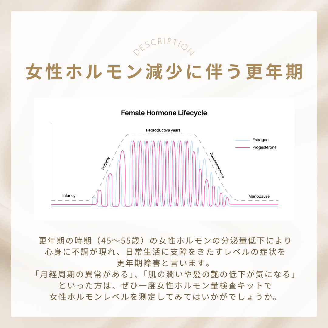 ◆結果レポートでは自身のホルモンレベルと女性ホルモンに関する情報や美容や健康の対策についてご紹介いたします。
