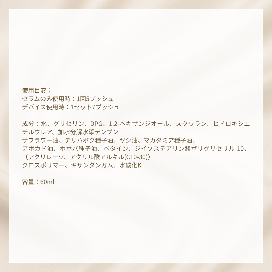 肌を保護し、肌表面の乾燥を防ぎバリア機能をサポートする高保湿仕様ながらも、デバイスの通電を妨げないpiton home専用オイルインセラムです。