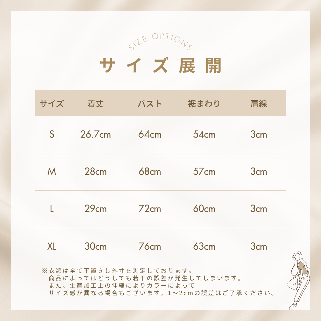 商品によってはどうしても若干の誤差が発生してしまいます。また、生産加工上の伸縮によりカラーによってサイズ感が異なる場合もございます。1〜2cmの誤差はご了承ください。
