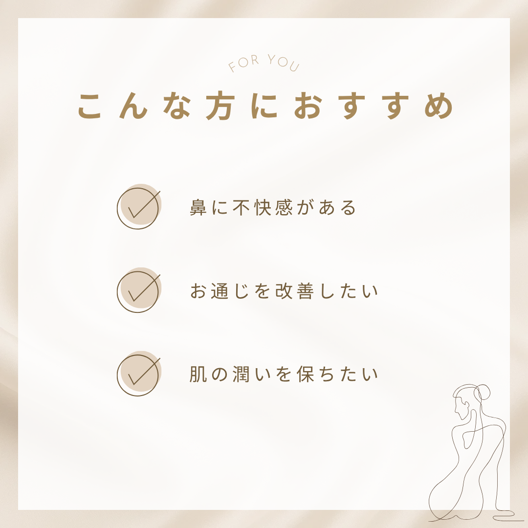 花粉・ホコリ・ハウスダストによる鼻の不快感を軽減するほか、