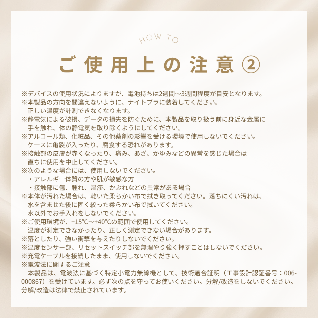 ※本製品の方向を間違えないように、ナイトブラに装着してください。正しい温度が計測できなくなります。