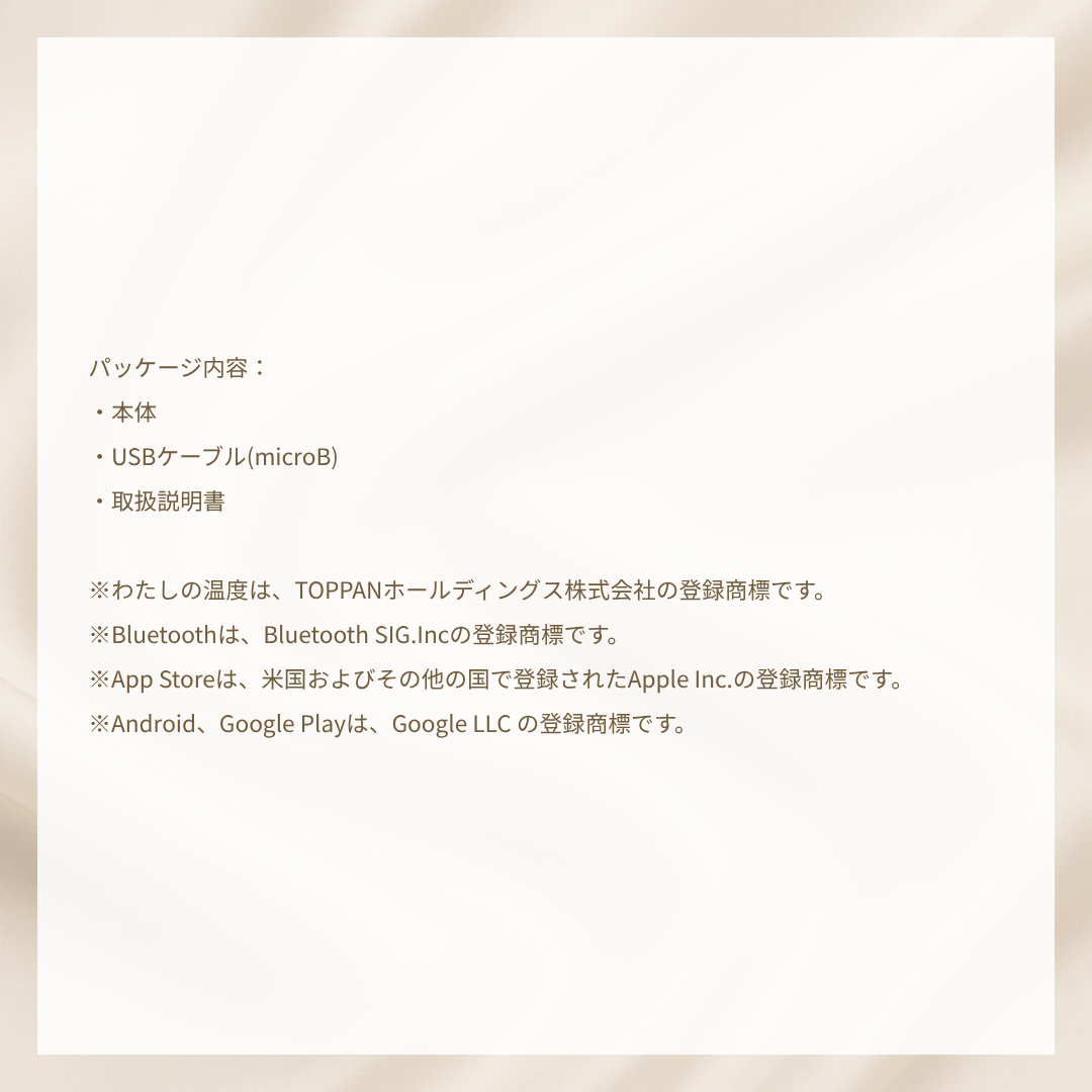 ※「わたしの温度®」は体温計(医療機器)ではなく、疾病の診断、治療または予防に使用されることを目的とするものではありません。衣服内温度データを利用して自己の健康管理をサポートするヘルスケアデバイス&アプリです。