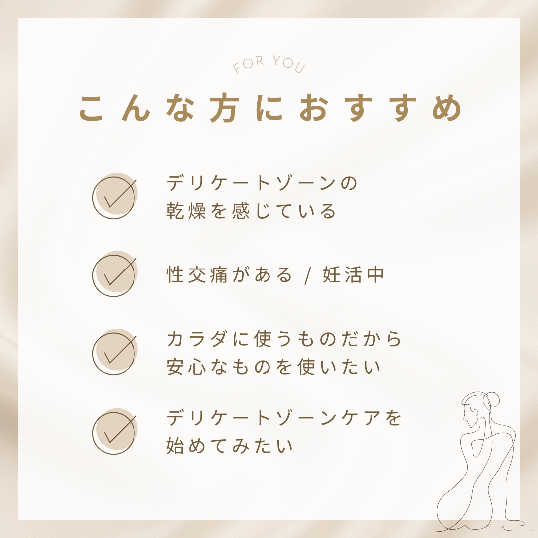 適量を手にとり、デリケートゾーンに塗布してください。洗い流す必要はありません。